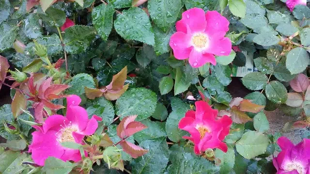 Water! Roses do prefer a bit more moisture than other plants. Amend the soil with compost at planting time for a soil that will hold moisture. Depending on the rainfall, the average shrub rose will need about 1-3 gallons of water a week applied at the base of the plant. Don’t water the leaves or flowers to help prevent disease and add mulch to increase water retention.